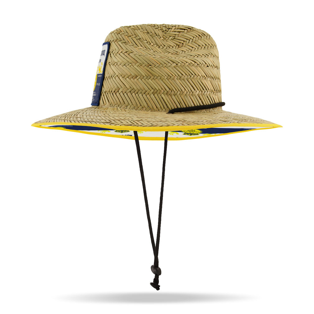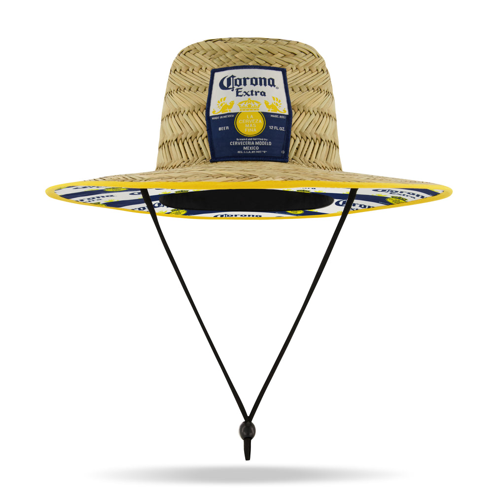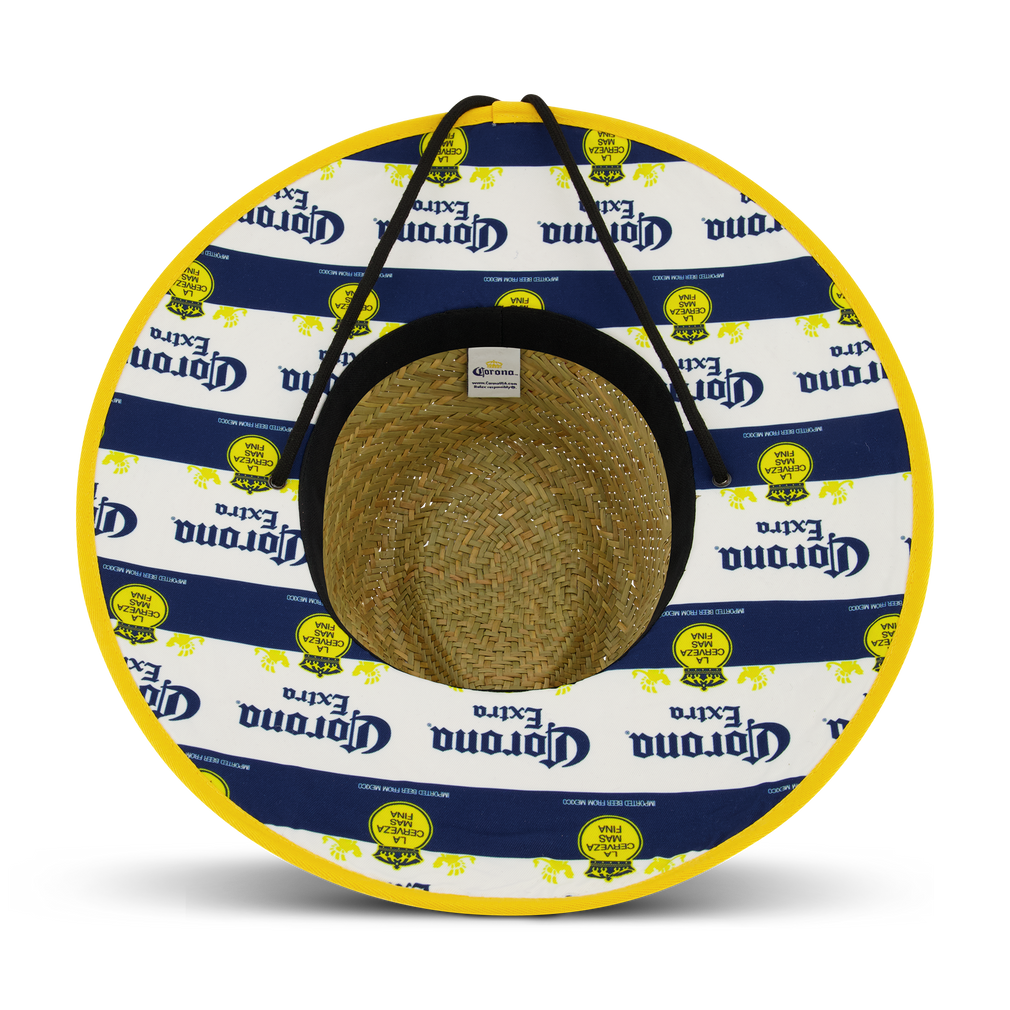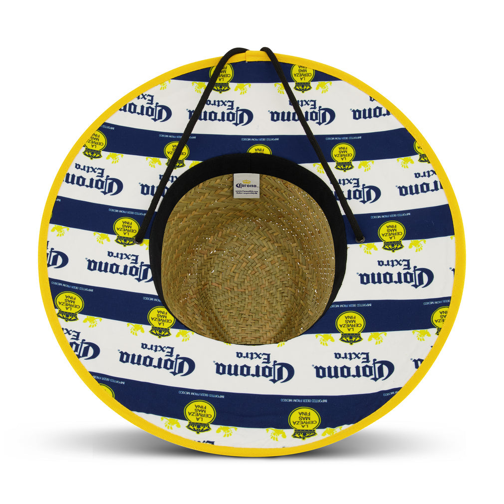 Corona Extra Branded Straw Sun Hat with Blue and Yellow Striped Brim