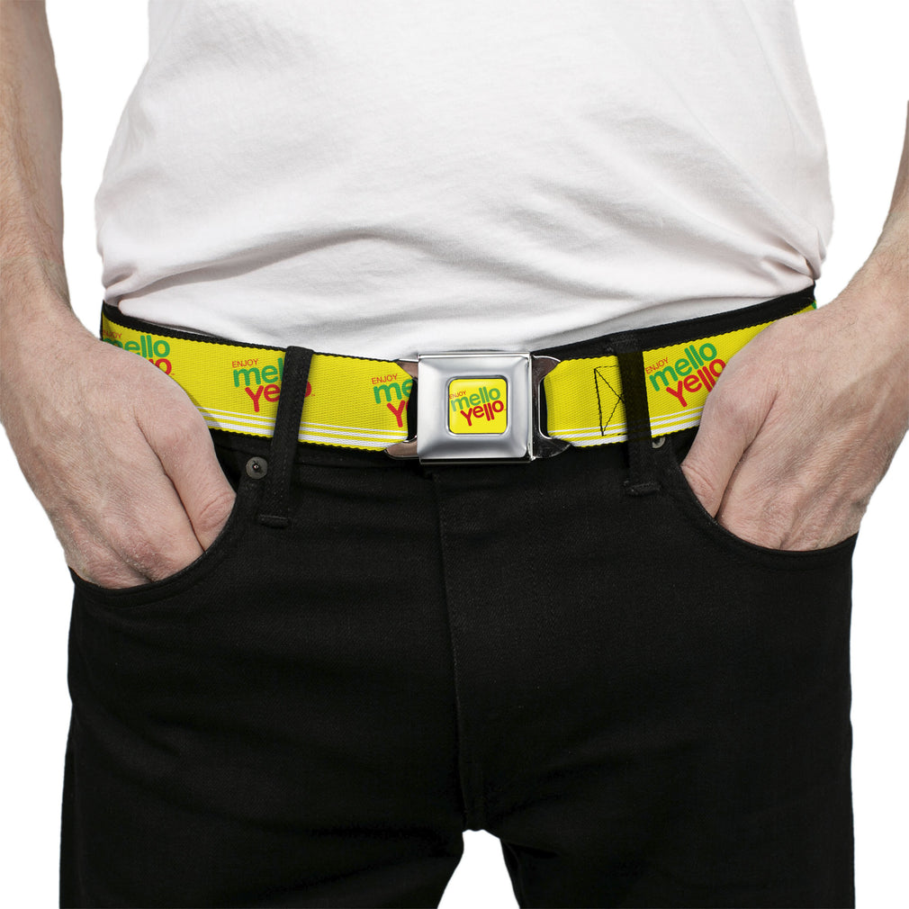 ENJOY MELLO YELLO Logo Full Color Yellow/Red/Green Seatbelt Belt - ENJOY MELLO YELLO Logo Yellow/Red/Green Webbing | Wholesale Seatbelt Belts