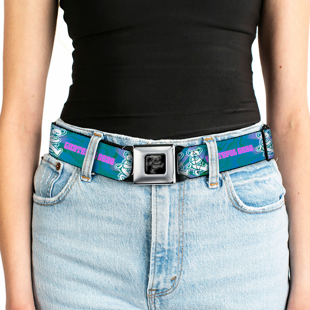 Wholesale Grateful Dead Bear Seatbelt Belt - GRATEFUL DEAD Dancing Bear Trio Rays/Swirl Blues/Purples/Pink/White Webbing | Wholesale Seatbelt Belts