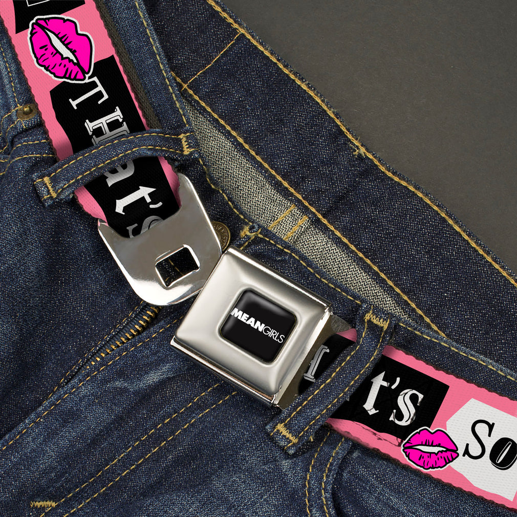 Wholesale MEAN GIRLS Title Logo Full Color Black/Pinks/Diamonds Seatbelt Belt - Mean Girls THAT'S SO FETCH Collage Pink/Black/White Webbing | Wholesale Seatbelt Belts