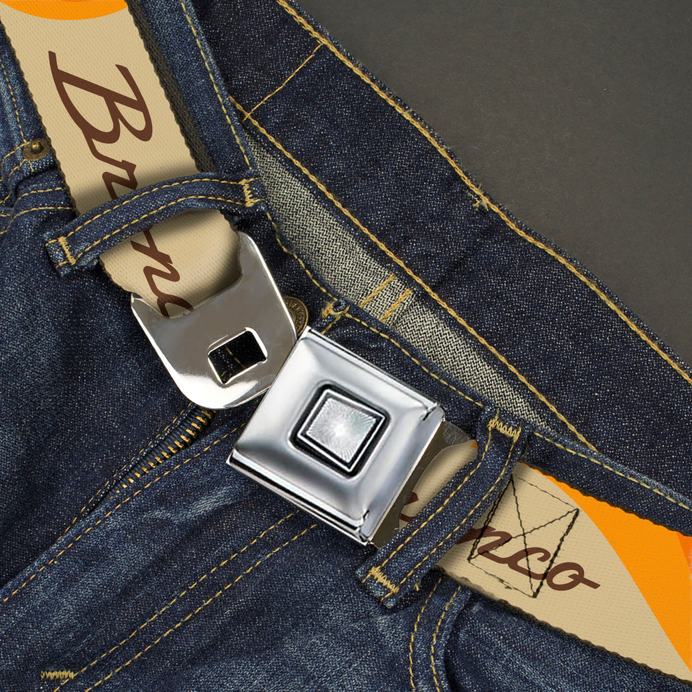 Starburst Seatbelt Belt - Ford BRONCO Script Wave Beige/Brown/Blue/Orange Webbing | Wholesale Seatbelt Belts