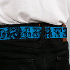 Wholesale Steal Your Face Seatbelt Belt - Grateful Dead Text w/Skull & Roses Turquoise Webbing | Wholesale Seatbelt Belts