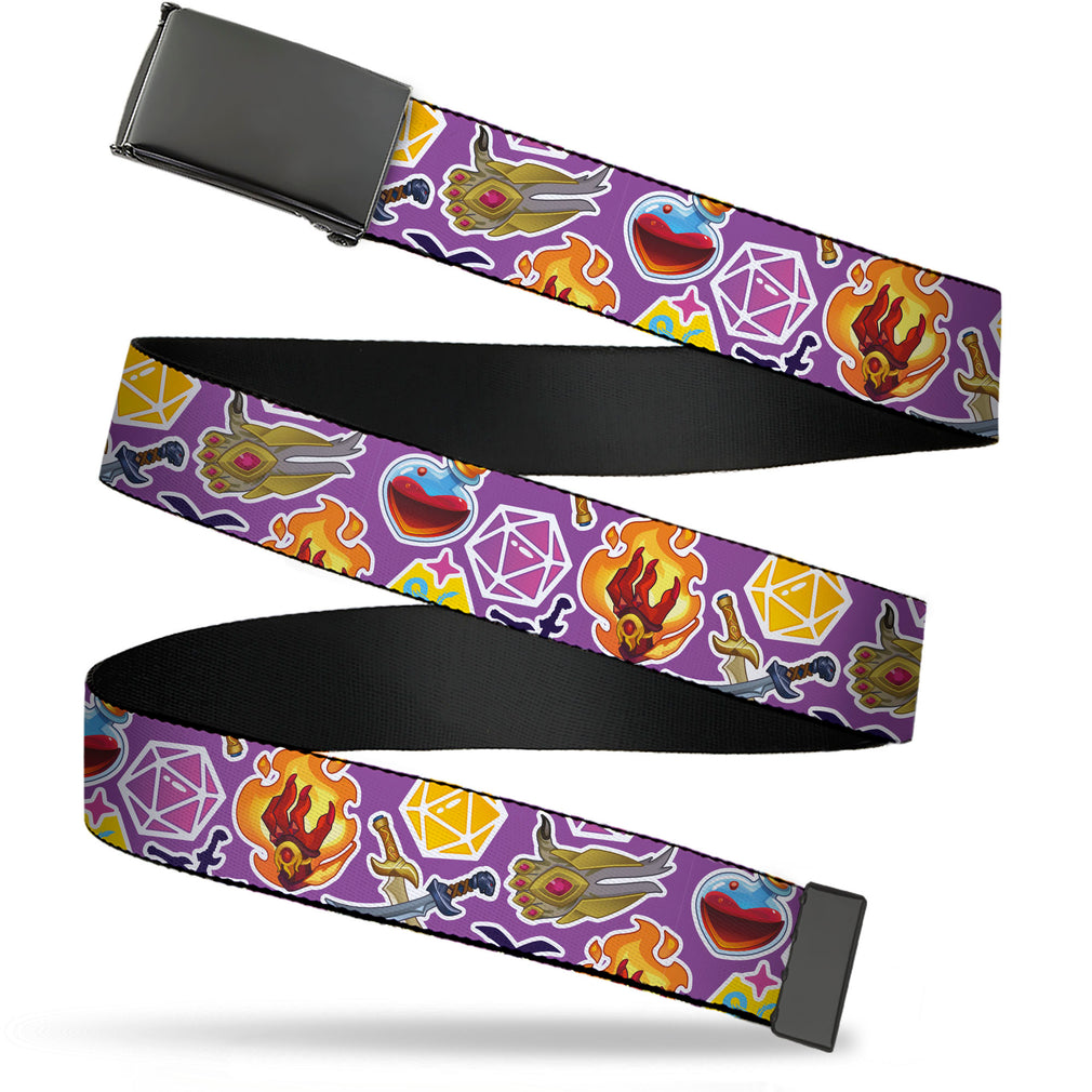 Web Belt Blank Black Buckle - Dungeons & Dragons Icons Scattered Purple Webbing | Wholesale Web Belts