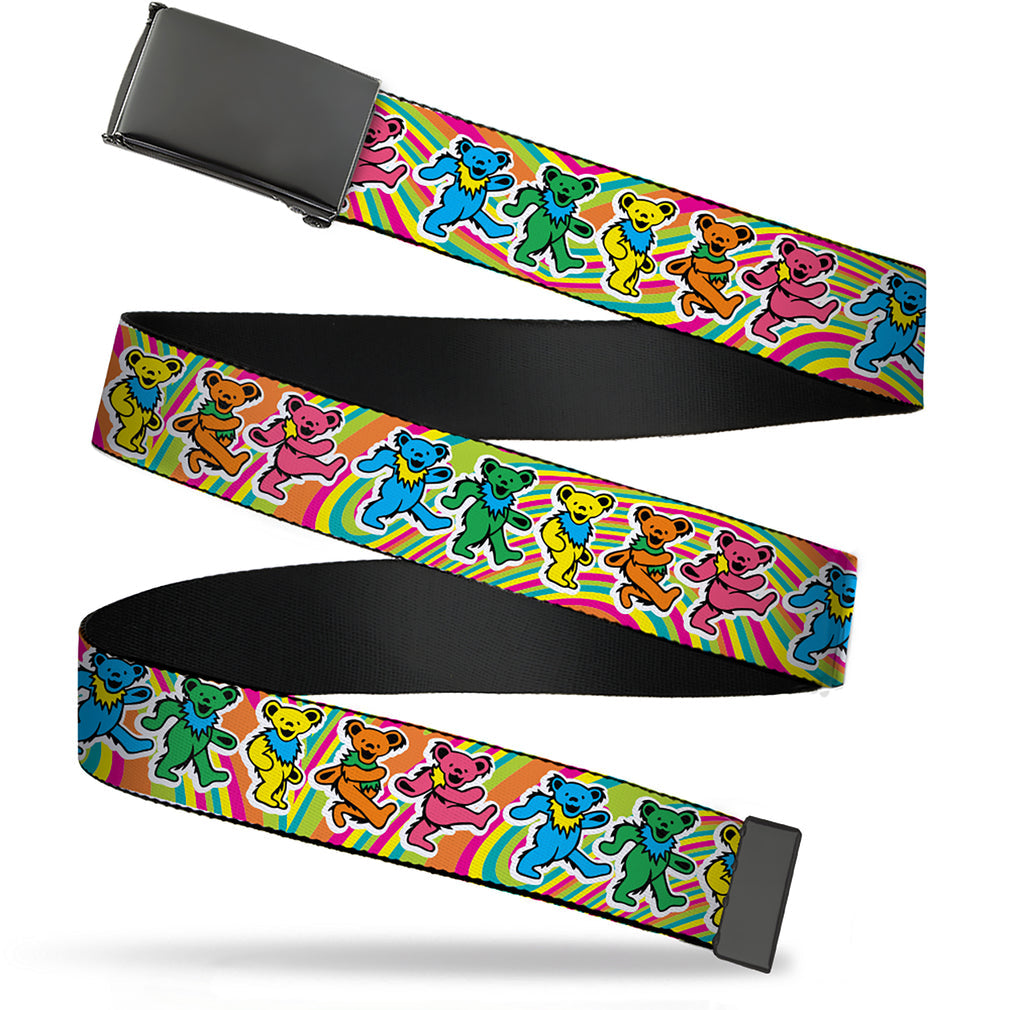 Wholesale Web Belt Blank Black Buckle - Grateful Dead Dancing Bears Swirl Multi Color Webbing | Wholesale Web Belts