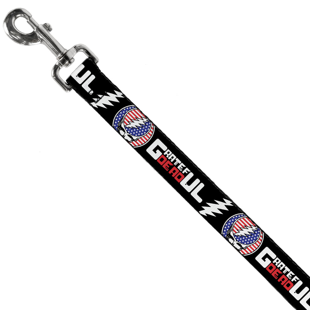 Wholesale Dog Leash - GRATEFUL DEAD Text with Steal Your Face Stars and Stripes Logo Black/White/Red/Blue | Wholesale Dog Leashes