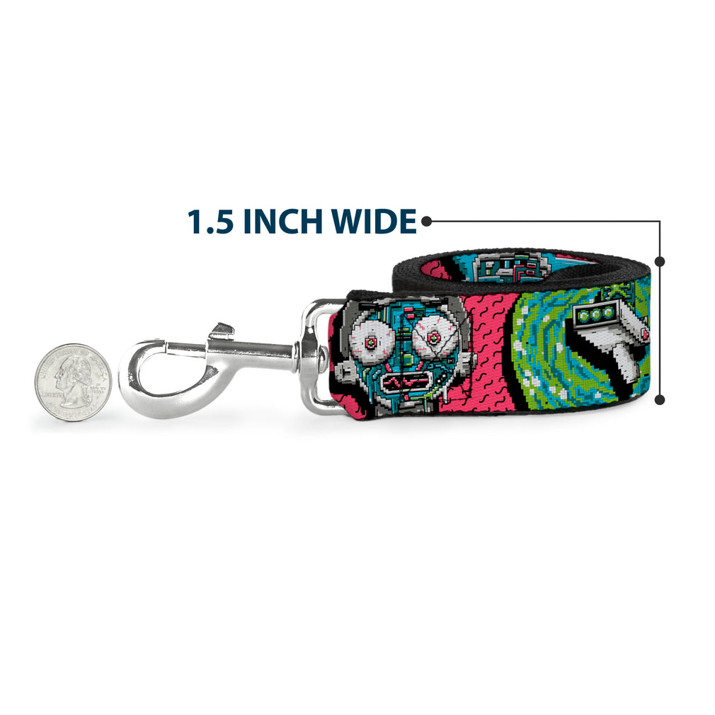 This fashion-forward dog leash is a great way to show off your favorite characters or brands. The durable components and beautiful printing ensure that the colors will continue to pop for years to come! It is made of high-density polyester and steel hardware. The leash is available in 0.5, 1.0 and 1.5 inches wide, and 4 and 6 feet in length. This product is Made in the USA by Buckle-Down Inc. and officially licensed by Rick and Morty.