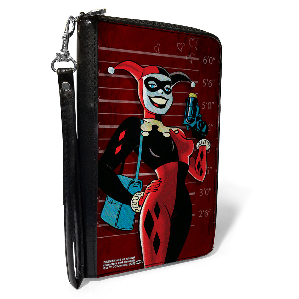 Wholesale PU Zip Around Wallet Rectangle - Harley Quinn Mad Love Knock Pose/Lineup Reds | Wholesale Clutch Zip Around Wallets