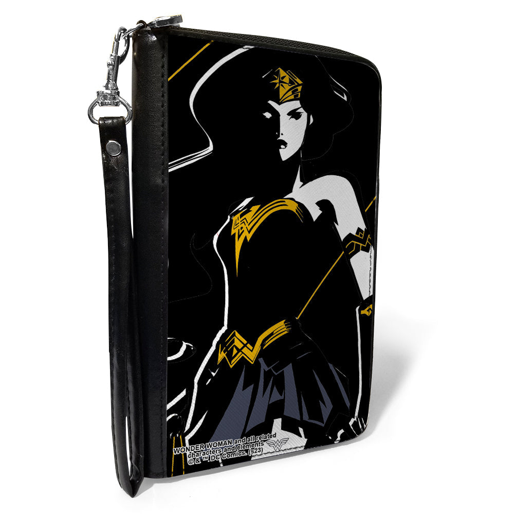 Wholesale PU Zip Around Wallet Rectangle - Justice League 2017 Wonder Woman Pose Black/White/Gold/Blue | Wholesale Clutch Zip Around Wallets