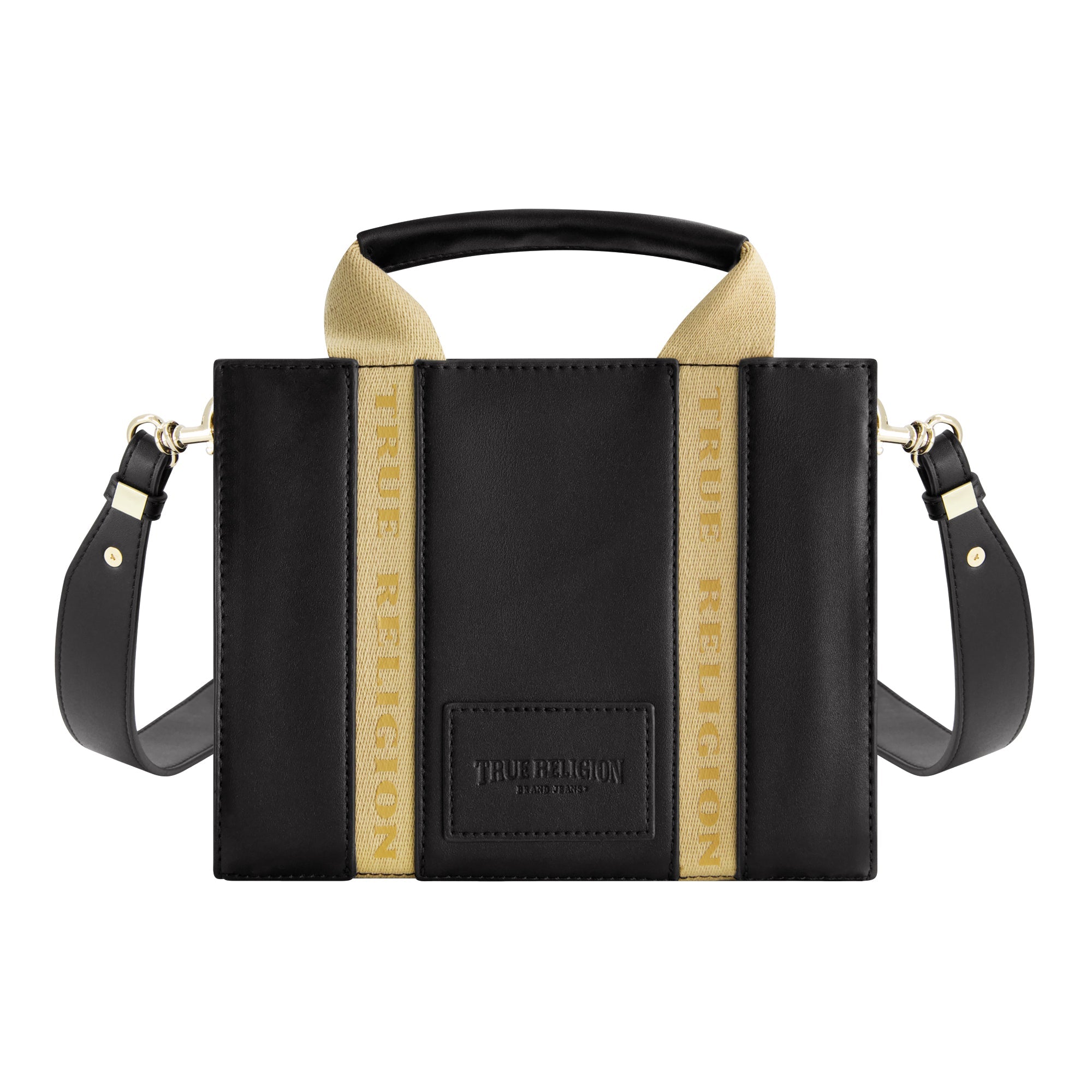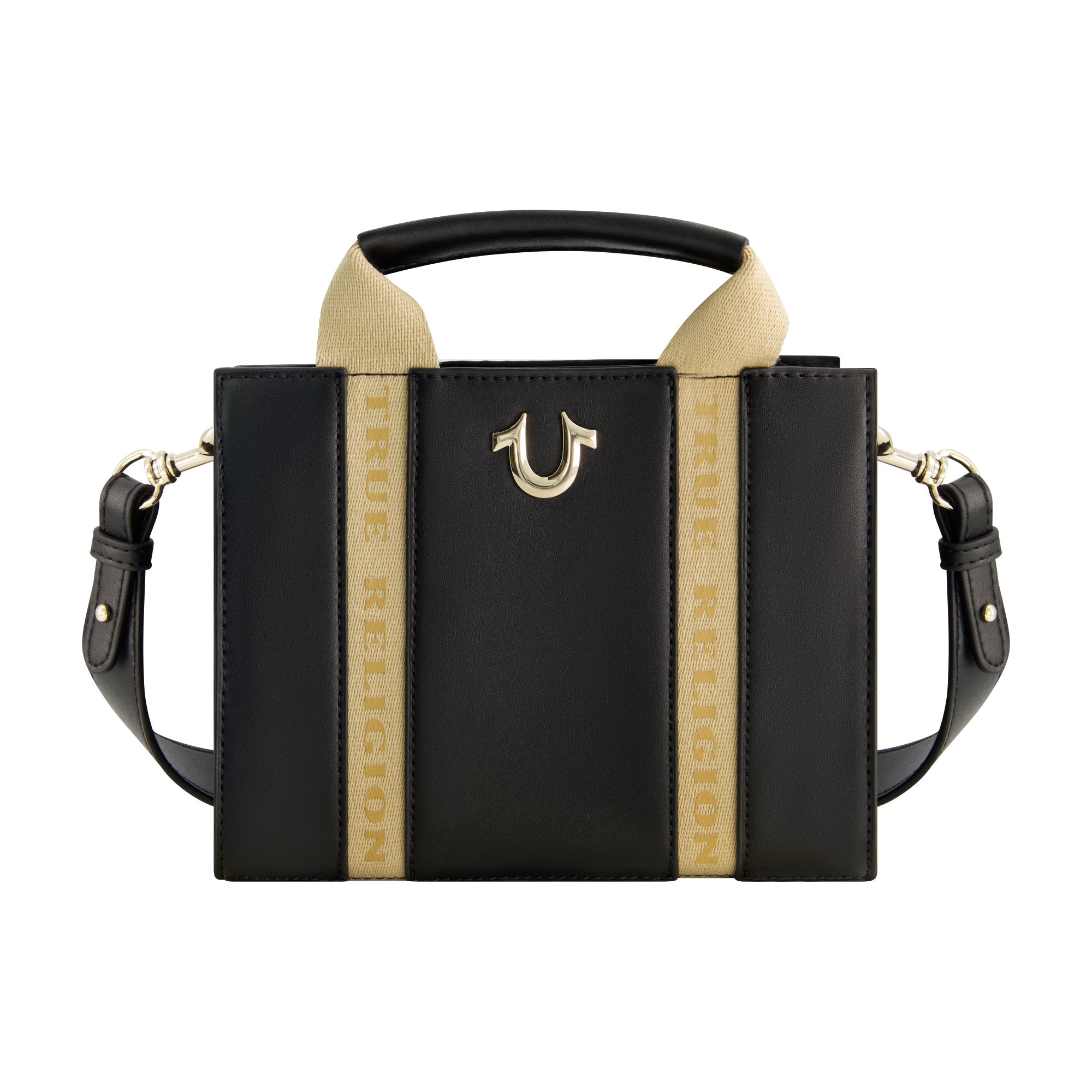 True Religion Licensed Faux Leather Mini Tote Bag with Branded Straps, BLACK | Wholesale Tote Bag