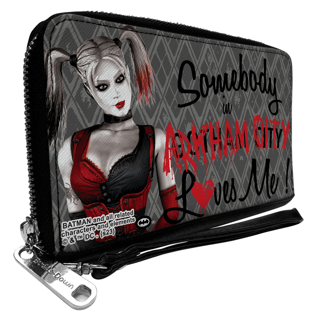 Wholesale PU Zip Around Wallet Rectangle - Harley Quinn SOMEBODY IN ARKHAM CITY LOVES ME Grays/Black/Red