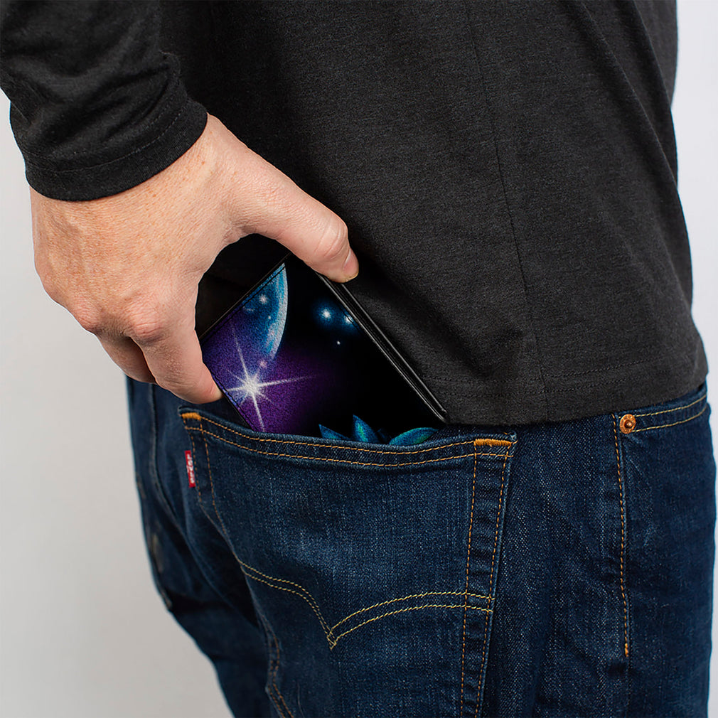 Wholesale Bi-Fold Wallet - Rick and Morty Glow Skull in Space Scattered Black Blues Greens