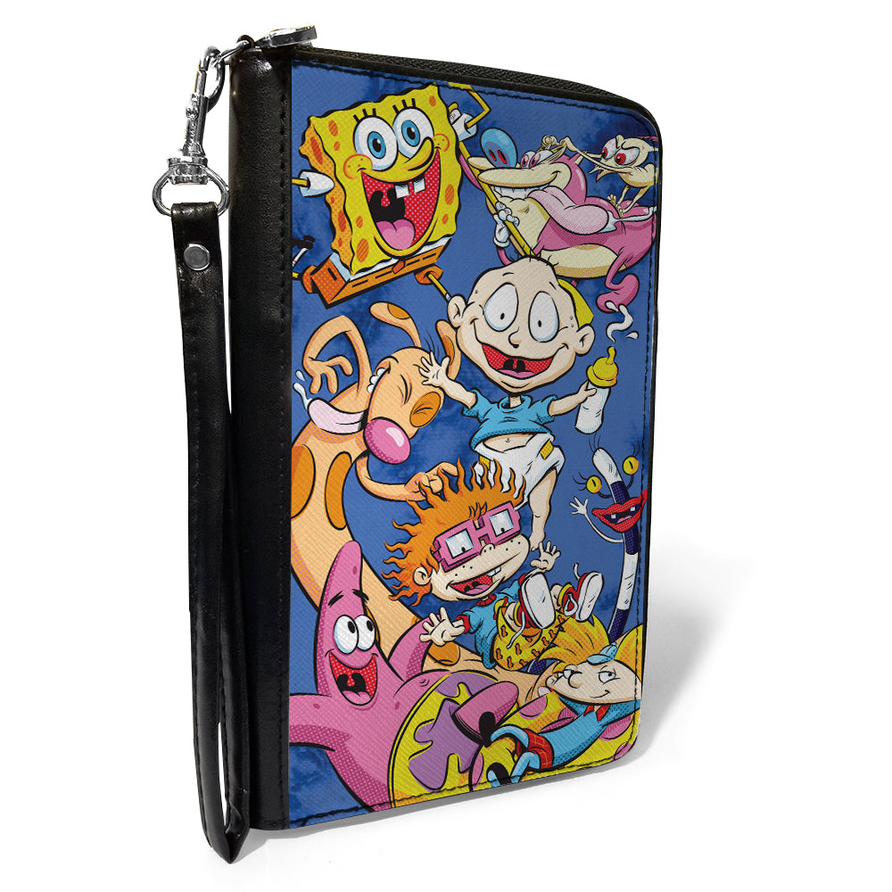 Wholesale Women's PU Zip Around Wallet Rectangle - Nick 90's 9-Character Mash Up Collage Blues