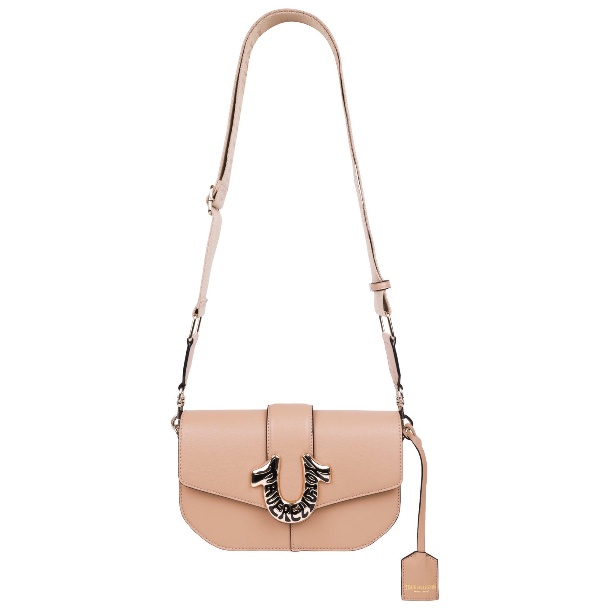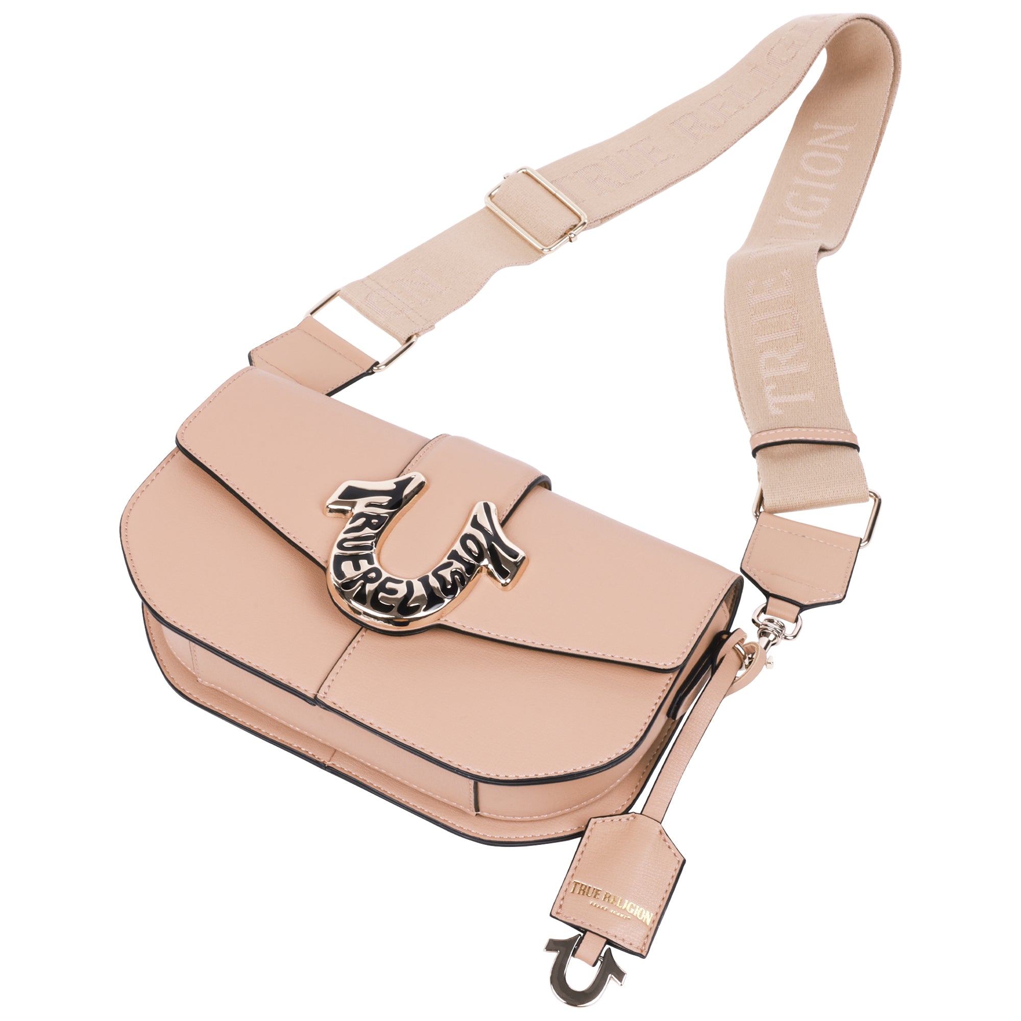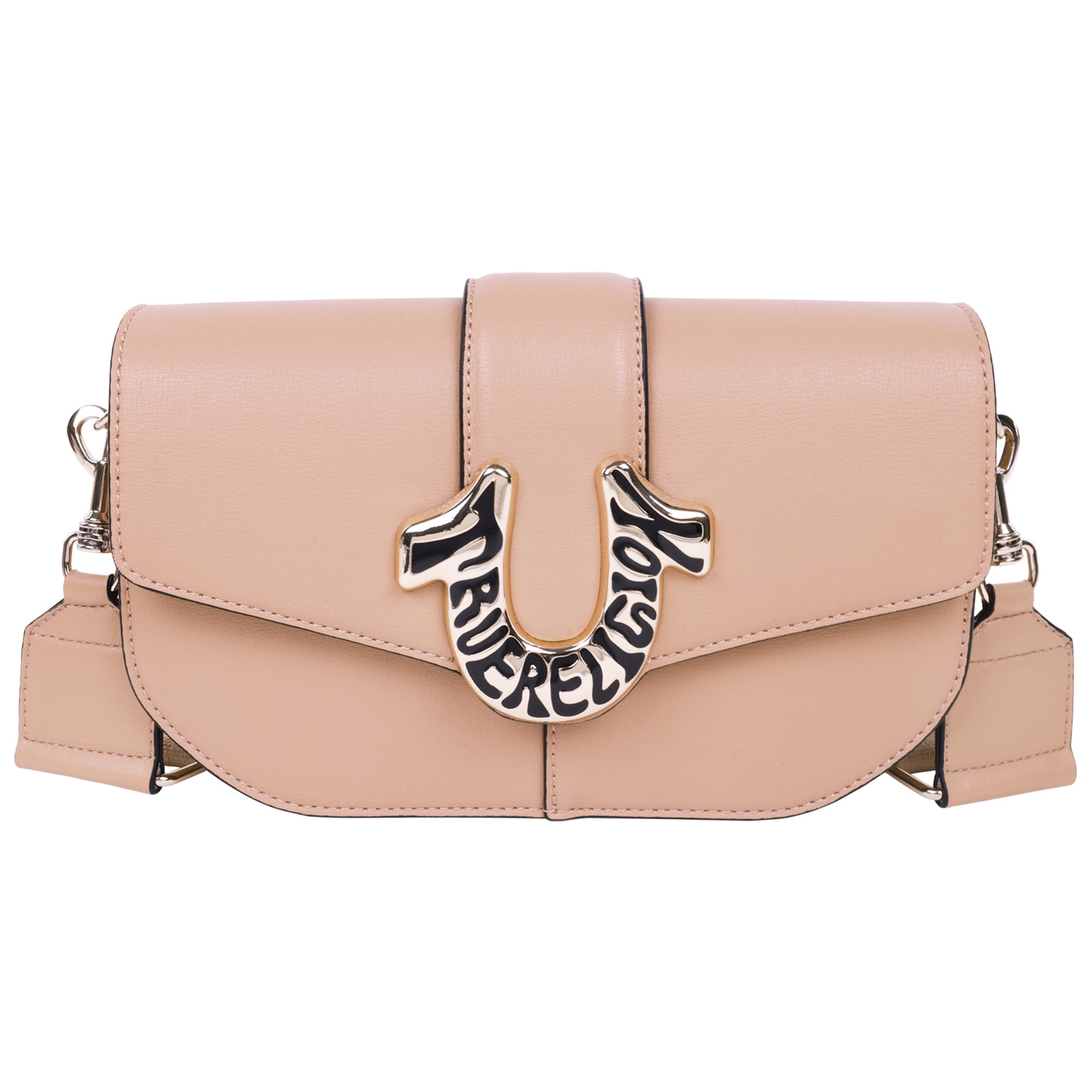 Elevate your style with this True Religion Shoulder Bag, designed with a bold horseshoe logo for a standout look. Featuring a structured design with a flap closure, this bag provides both style and functionality. The spacious interior includes a secure zippered pocket for your essentials, while the adjustable shoulder strap offers a comfortable fit. Whether you're heading to a casual outing or need a sleek accessory for your everyday routine, this bag combines modern design with iconic branding for a truly elevated finish.