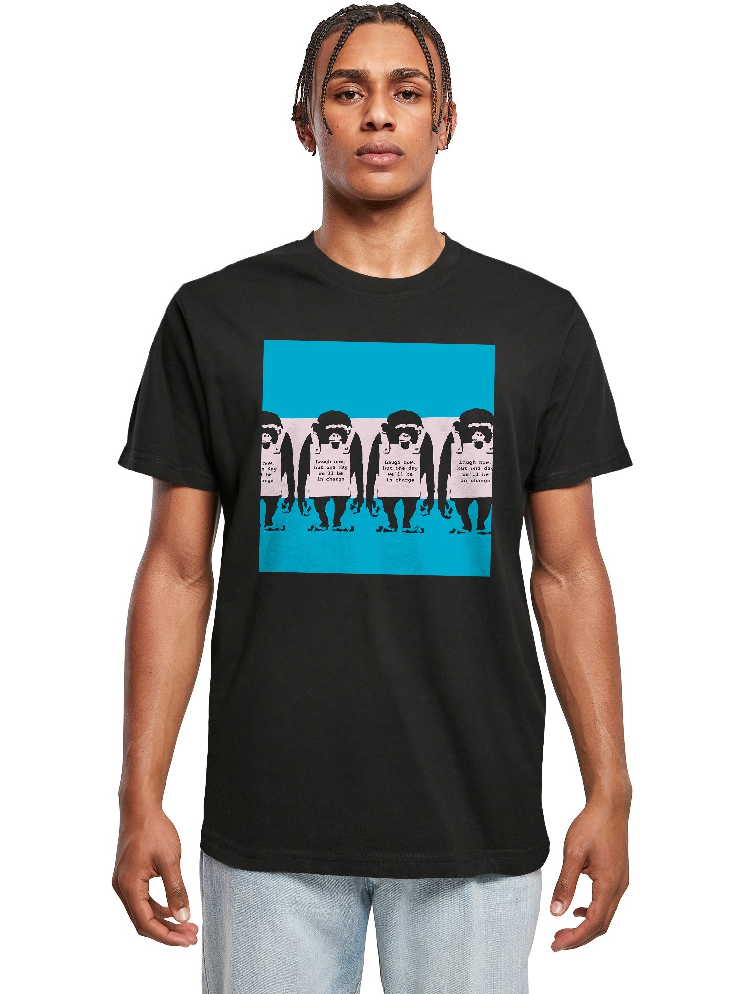 Banksy Men's Graphic Print T-Shirt - Chimp Lineup Tee - Black | Wholesale Licensed Art T-Shirts