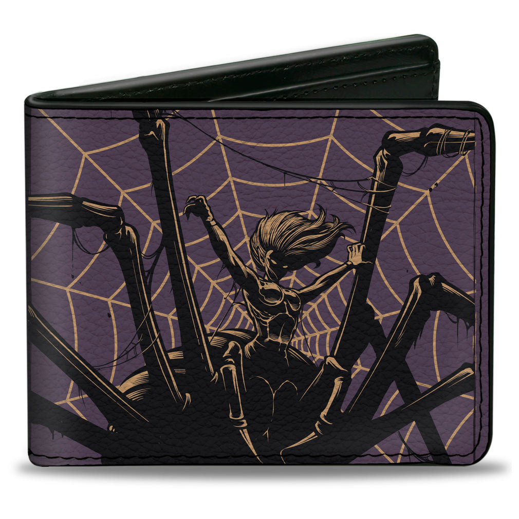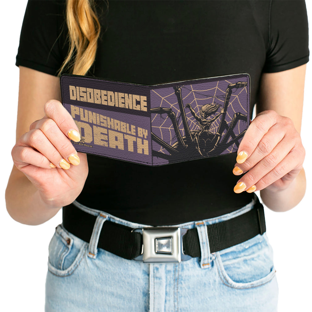 Bi-Fold Wallet - Dungeons & Dragons Drider DISOBEDIENCE PUNISHABLE BY DEATH Pose Black/Purple/Gold | Wholesale Bi-Fold Wallets