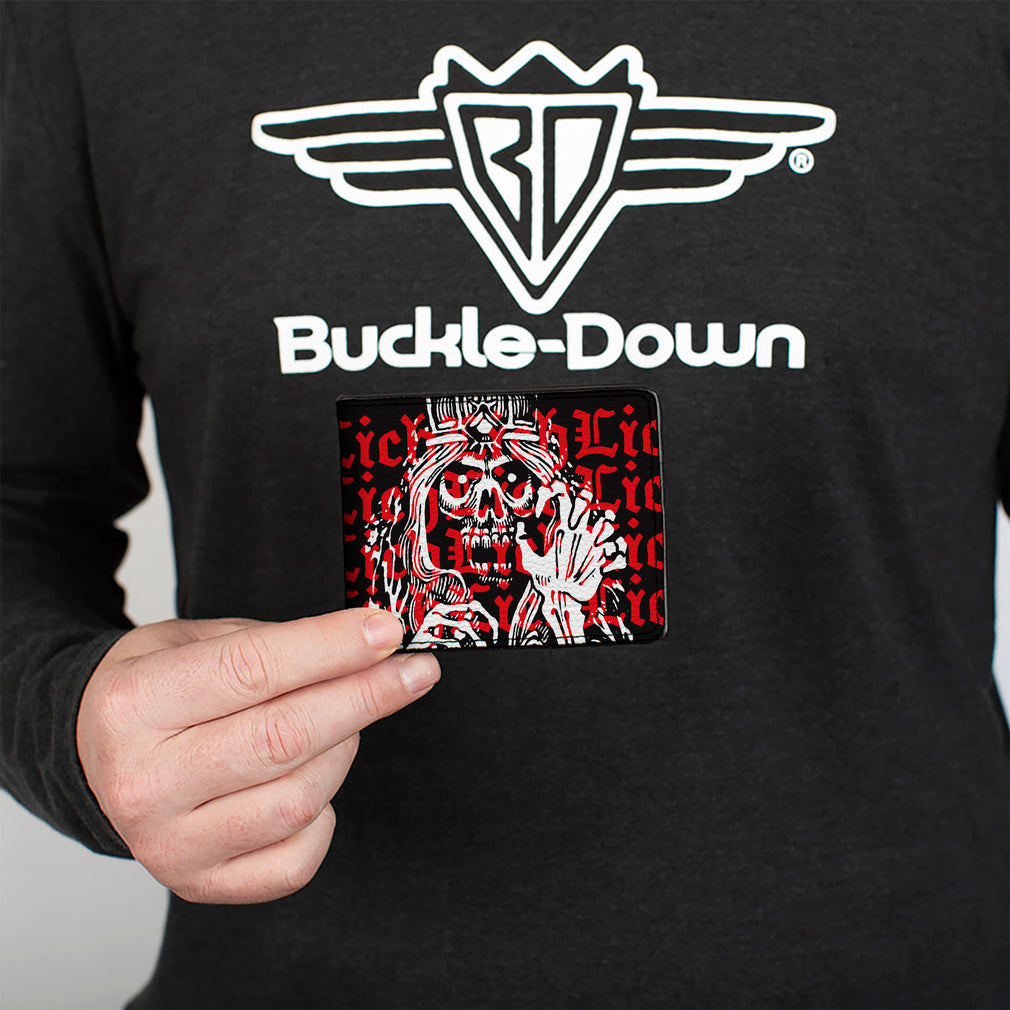 Bi-Fold Wallet - Dungeons & Dragons LICH Monster Illustration and Text Black/Red/White | Wholesale Bi-Fold Wallets