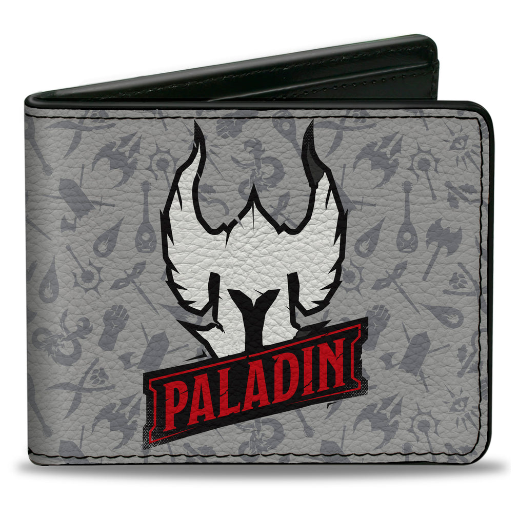 Bi-Fold Wallet - DUNGEONS & DRAGONS PALADIN Text and Icons Collage Grays/Black/Red | Wholesale Bi-Fold Wallets