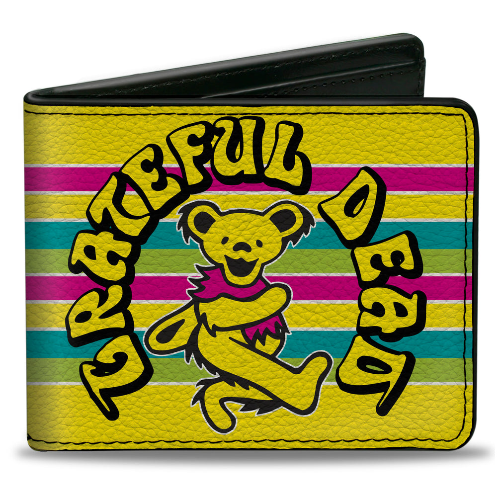 Wholesale Bi-Fold Wallet - GRATEFUL DEAD Dancing Bear Icon Stripe Yellow/Multi Color/Black | Wholesale Bi-Fold Wallets