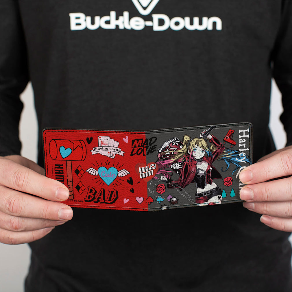 Wholesale Bi-Fold Wallet - Harley Quinn GOOD NIGHT Anime Pose and Icons Collage Red/Black | Wholesale Bi-Fold Wallets