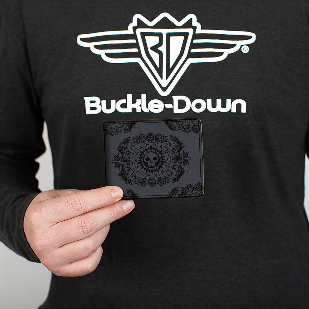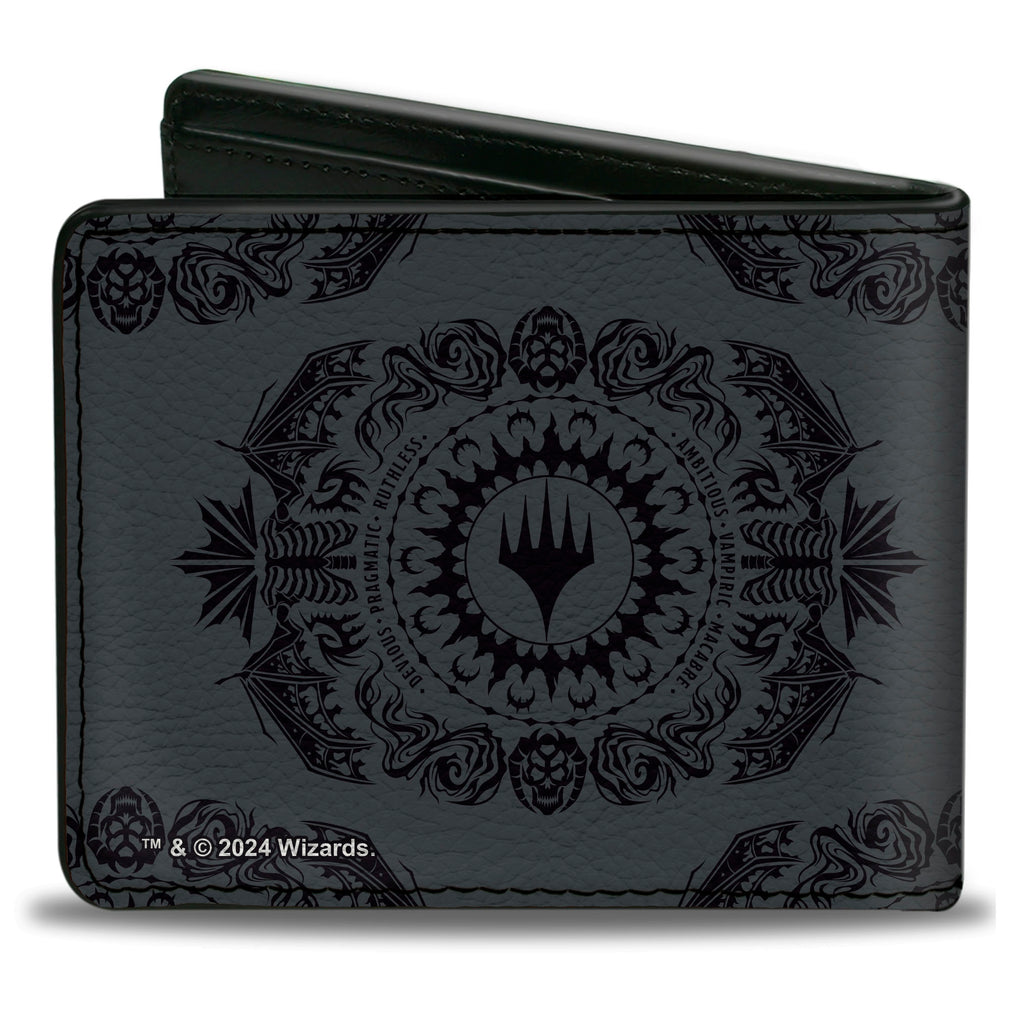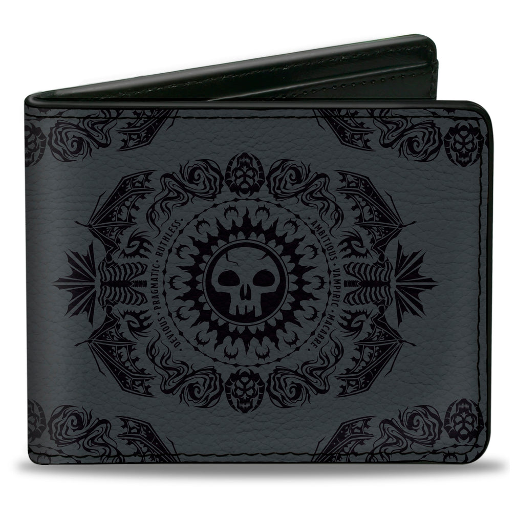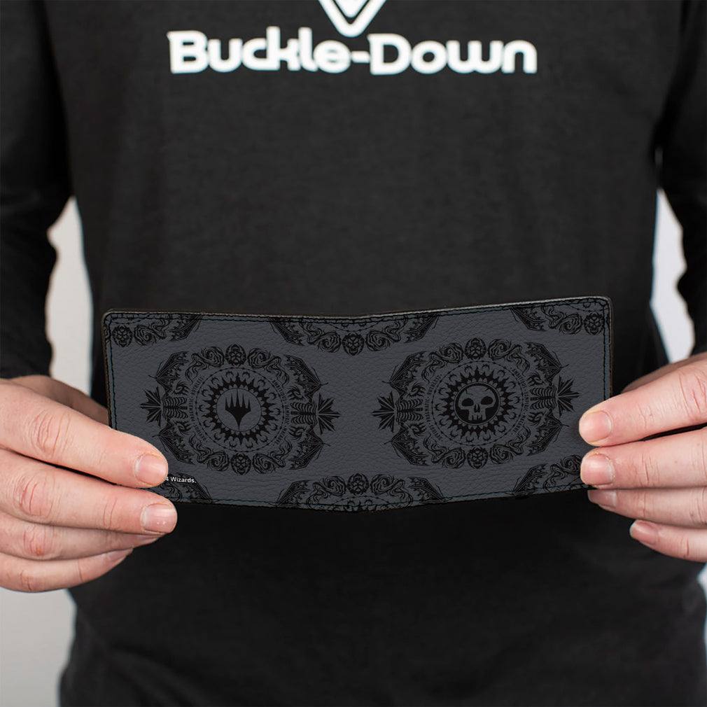 Wholesale Bi-Fold Wallet - Magic the Gathering Planeswalker Swamp Mana Traits Gray/Black | Wholesale Bi-Fold Wallets