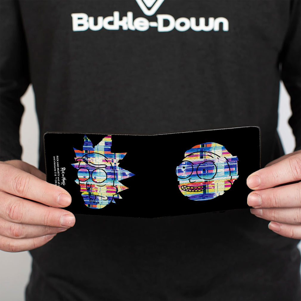 Wholesale Bi-Fold Wallet - Rick and Morty Static Faces Black/Multi Color | Wholesale Bi-Fold Wallets