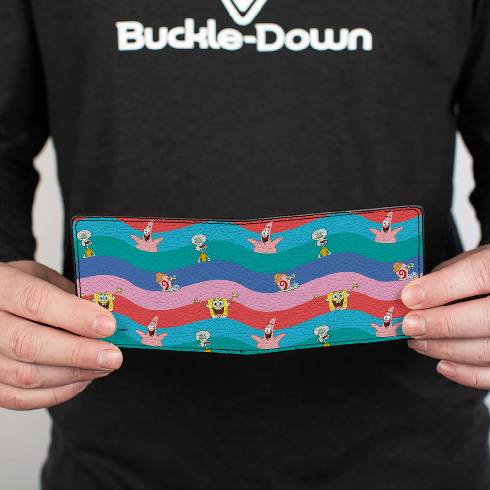 Wholesale Bi-Fold Wallet - SpongeBob SquarePants and Friends Poses Wavy Stripe Blues Reds | Wholesale Bi-Fold Wallets