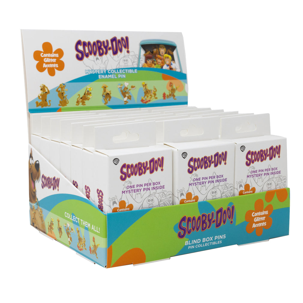 - Each Scooby Doo Collectible Pin Blind Box contains a hard enamel pin featuring glitter accents bearing a random mystery Scooby Doo Pose!