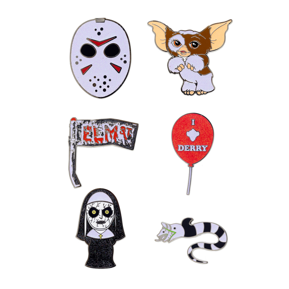 - Each Warner Bros. Horror Movies Collectible Pin Blind Box contains a hard enamel pin featuring glitter accents bearing a random mystery icon from from beloved Warner Bros. Horror Films!