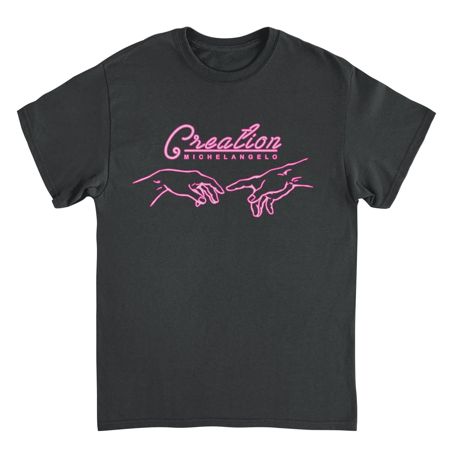 Classic Paintings Neon Creation Michelangelo Black T-Shirt | Wholesale Licensed Art T-Shirts