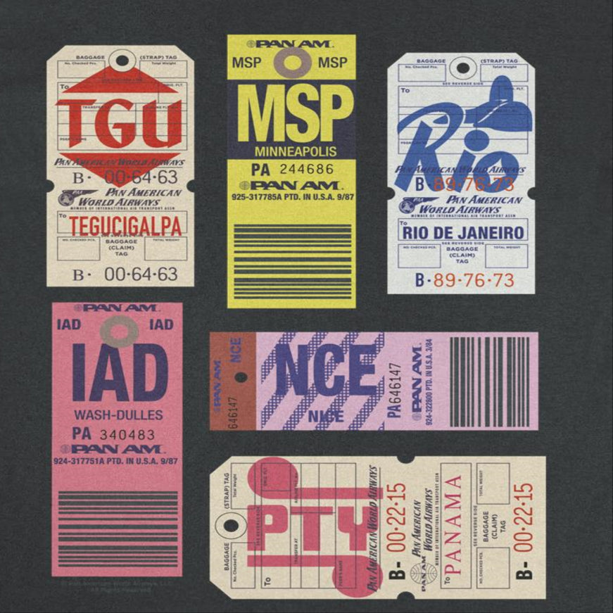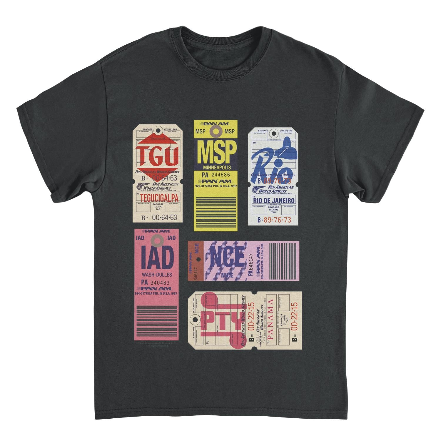 Pan Am 6 Retro Luggage Tags Black T-Shirt | Wholesale Brands T-Shirts