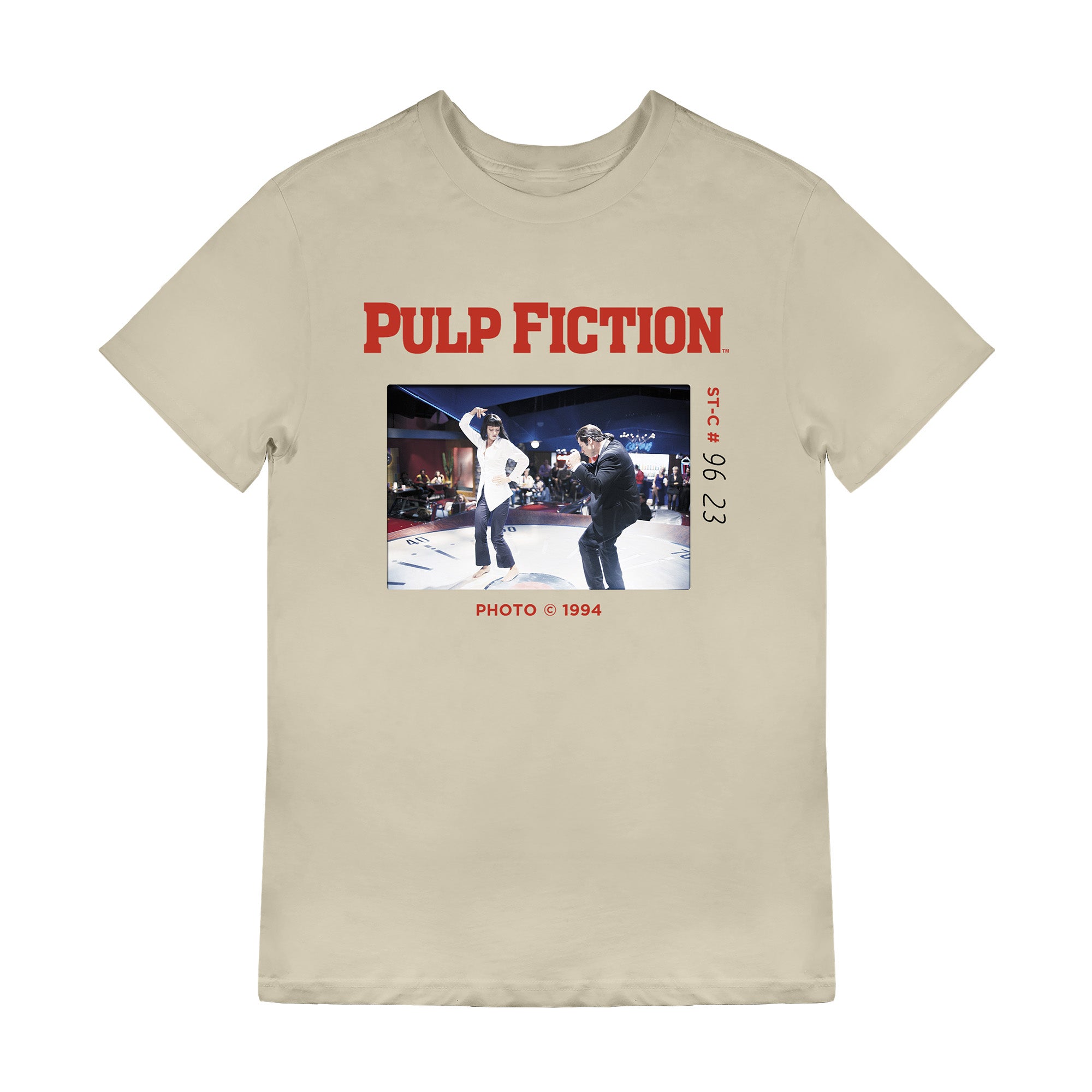 Stock officially licensed Dinner Dance tees in popular wet sand. The iconic dance scene is one of Pulp Fiction's most memorable moments. Wholesale movie t-shirts appeal to film fans and pop culture enthusiasts. Order Pulp Fiction apparel in bulk for your store at manufacturer-direct pricing. Available on the Merch Showroom wholesale marketplace with strong sales potential.