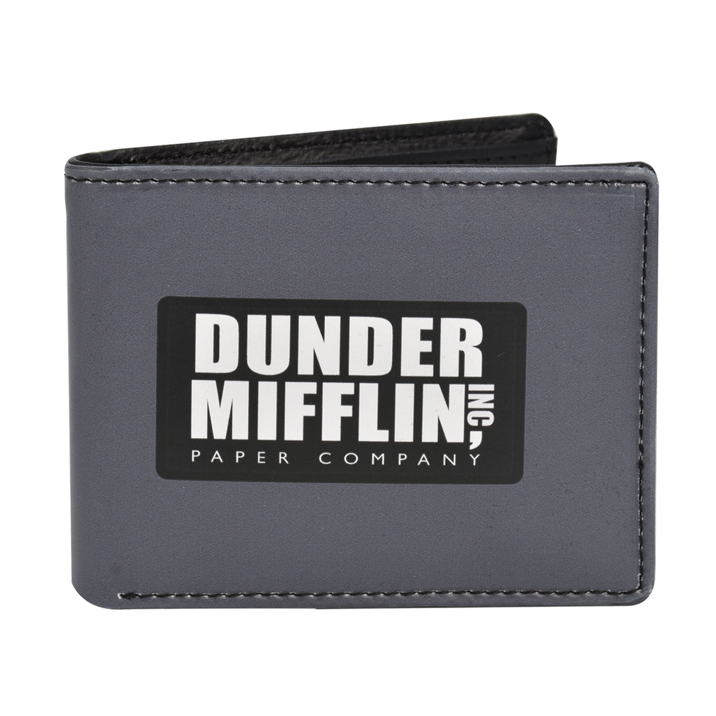 Support your favorite television sitcom and keep your money, cards, and identification in one convenient place with this The Office bifold wallet gift set. This gift set features a wallet bifold composed of lightweight and durable polyurethane and sporting the Dunder Mifflin logo, and includes a decorative wallet tin case adorned with The Office logo. The slim wallet for men and women fits easily in a coat or pants pocket so that you can take the travel wallet wherever you need to go, and the travel wallet passport provides a large pocket for keeping dollar bills, 3 small pockets for storing cards, and a pocket with an ID window for keeping your driver's license or state ID. This travel wallet passport holder gift set is an officially licensed product of The Office, ensuring that you are receiving a bifold wallet product of the highest possible quality, and not a cheap imitation.