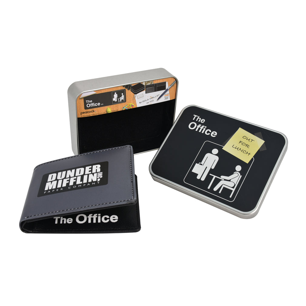 WALLET TIN: The Office television wallet gift set with a stylish Dunder Mifflin travel wallet, and an included decorative tin case decorated with The Office logo