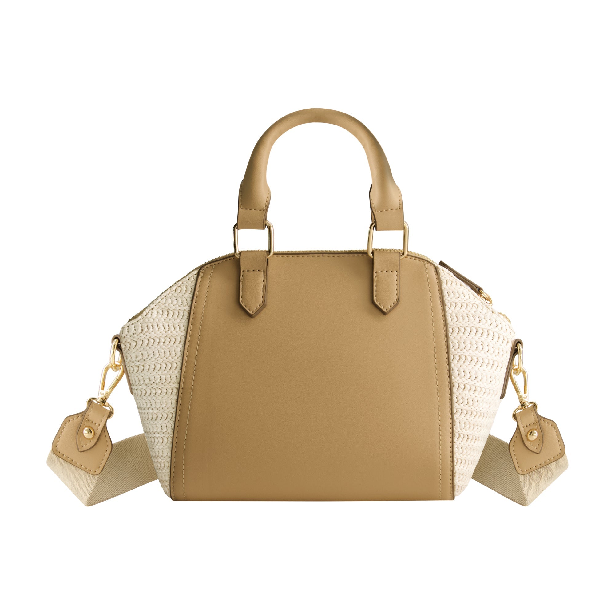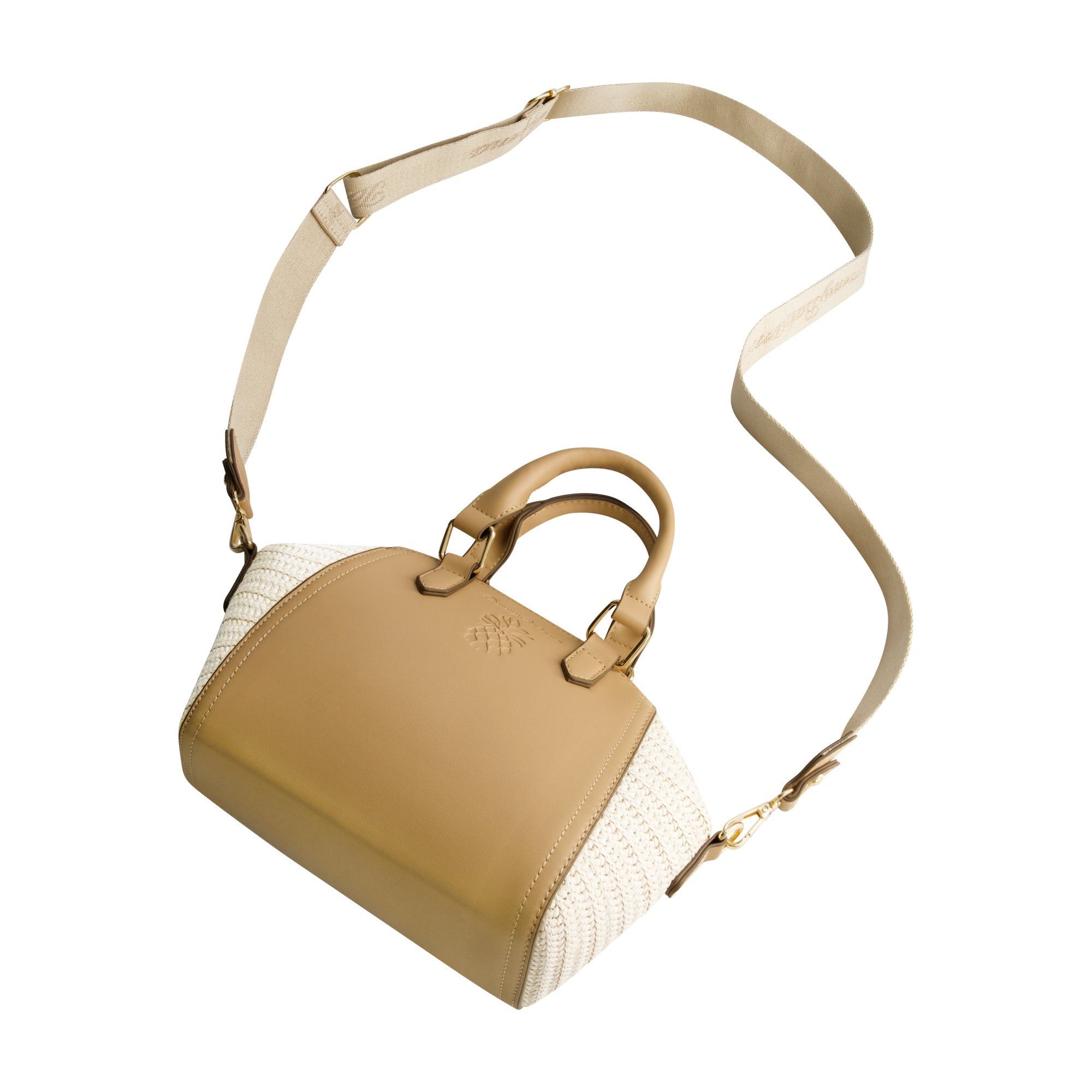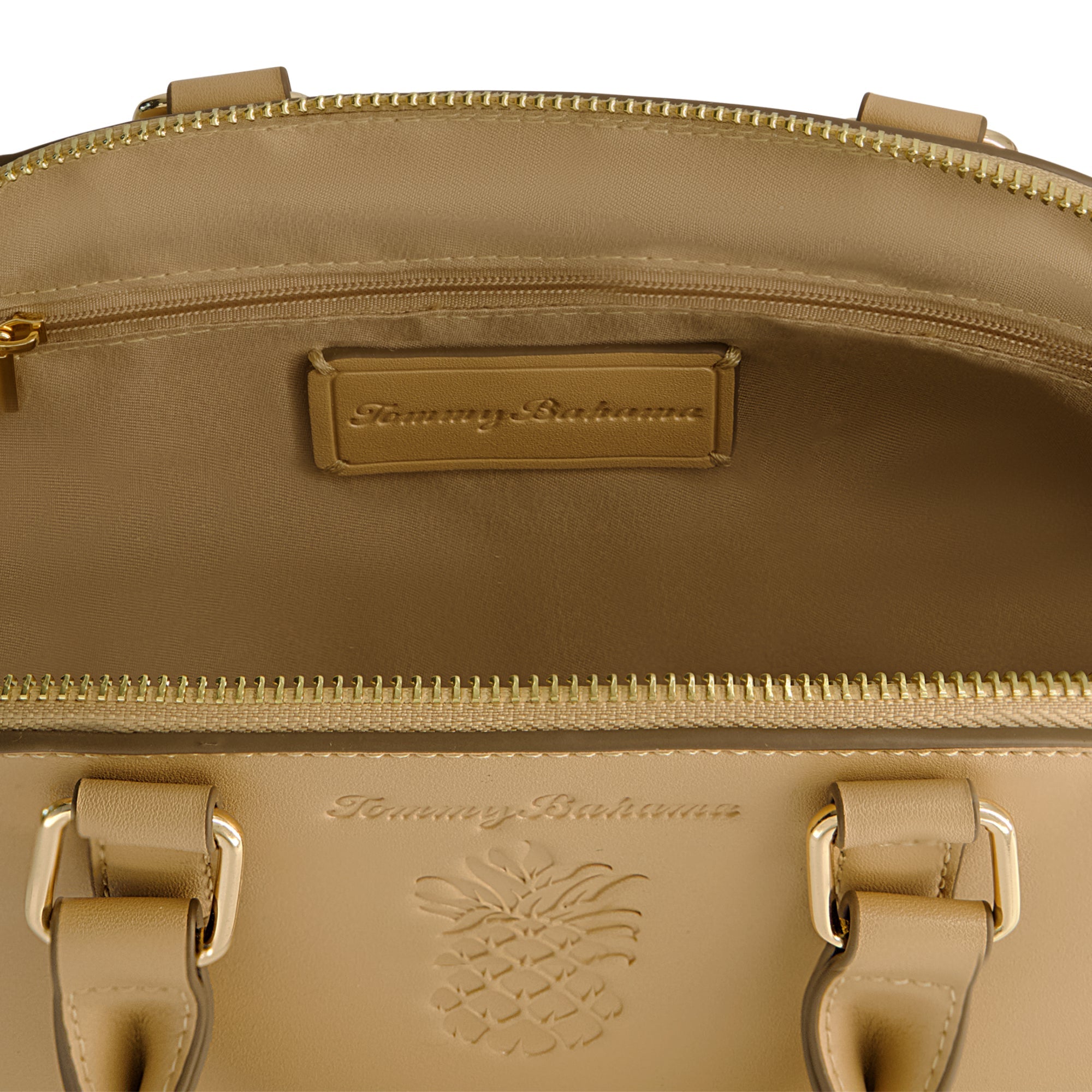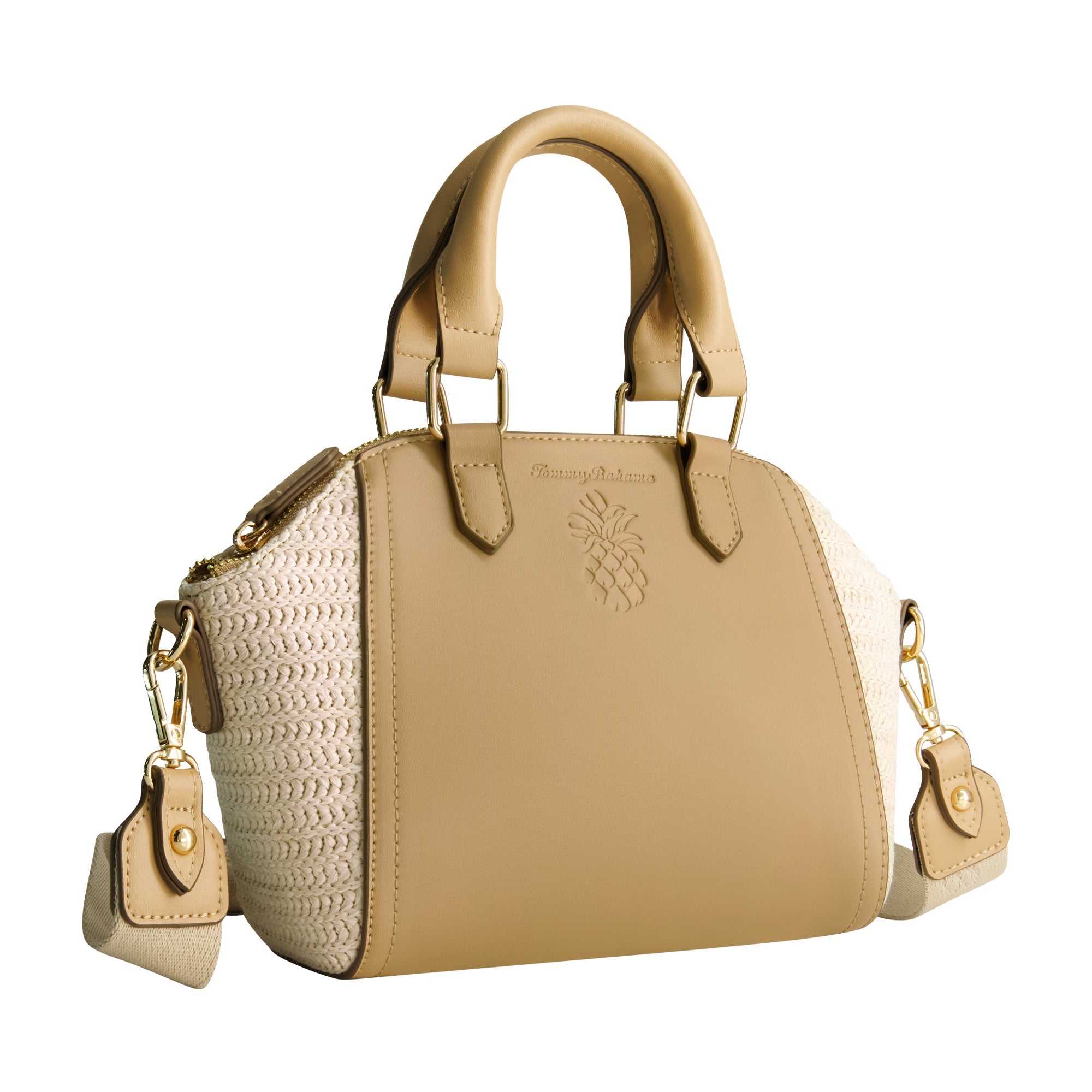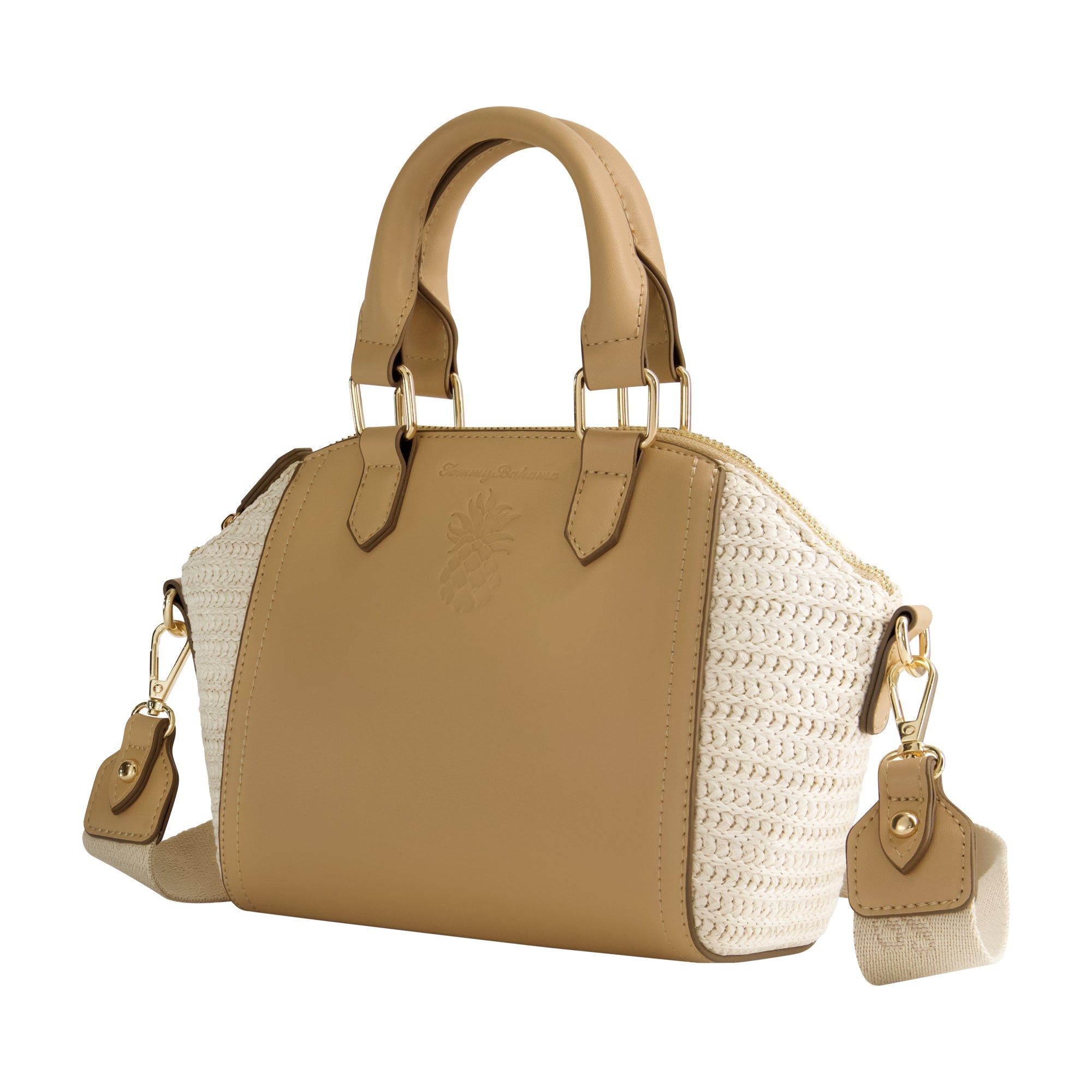 Tommy Bahama Mini Satchel with Debossed Logo and Straw Accents, TAN | Wholesale Handbag - Mini Satchel