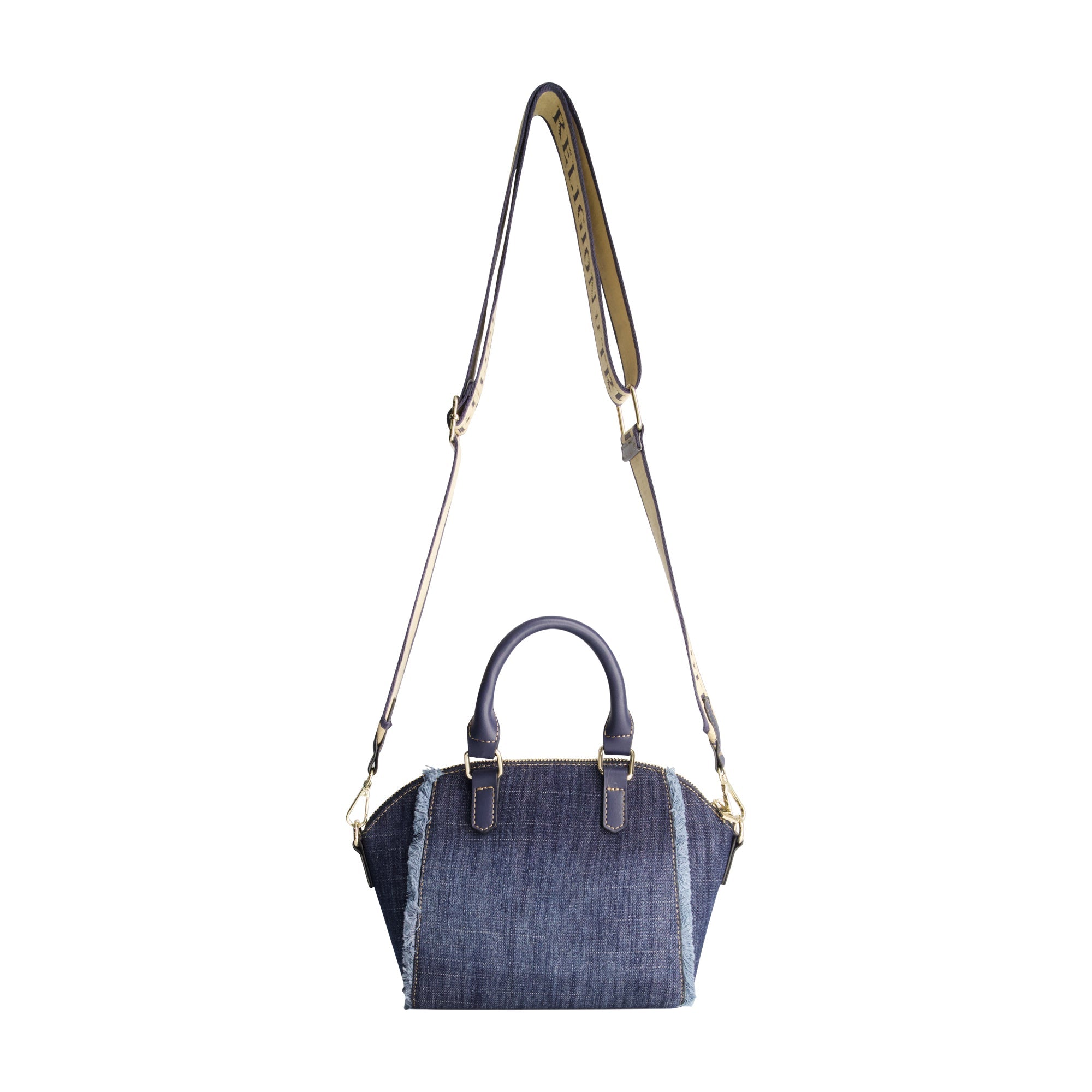 Classic denim meets modern luxury in the True Religion Frayed Denim Horseshoe Satchel. Featuring a structured silhouette with frayed edges, this standout bag embodies effortless street-style cool. The gold-tone horseshoe emblem on the front panel makes a bold statement, paying homage to the brand’s signature aesthetic. Designed for versatility, this satchel includes dual top handles for a polished look and a detachable logo-print shoulder strap for hands-free convenience. A zip-top closure secures your essentials, while the patterned interior lining with an inner pocket keeps things organized. Whether paired with casual or elevated outfits, this satchel is the perfect finishing touch for any wardrobe.