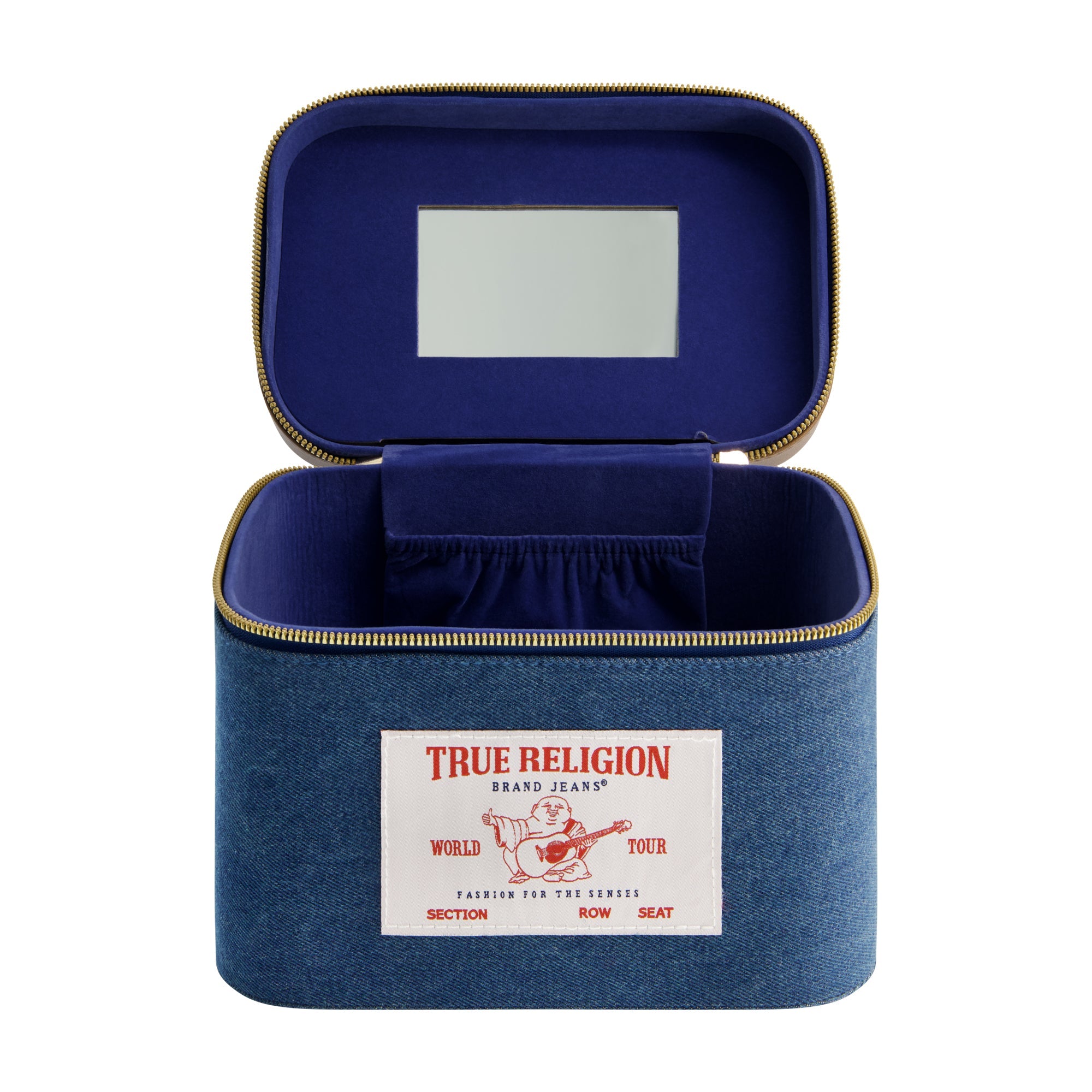 True Religion Large Denim Cosmetic Case with Mirror - Denim | Wholesale Cosmetic Bag