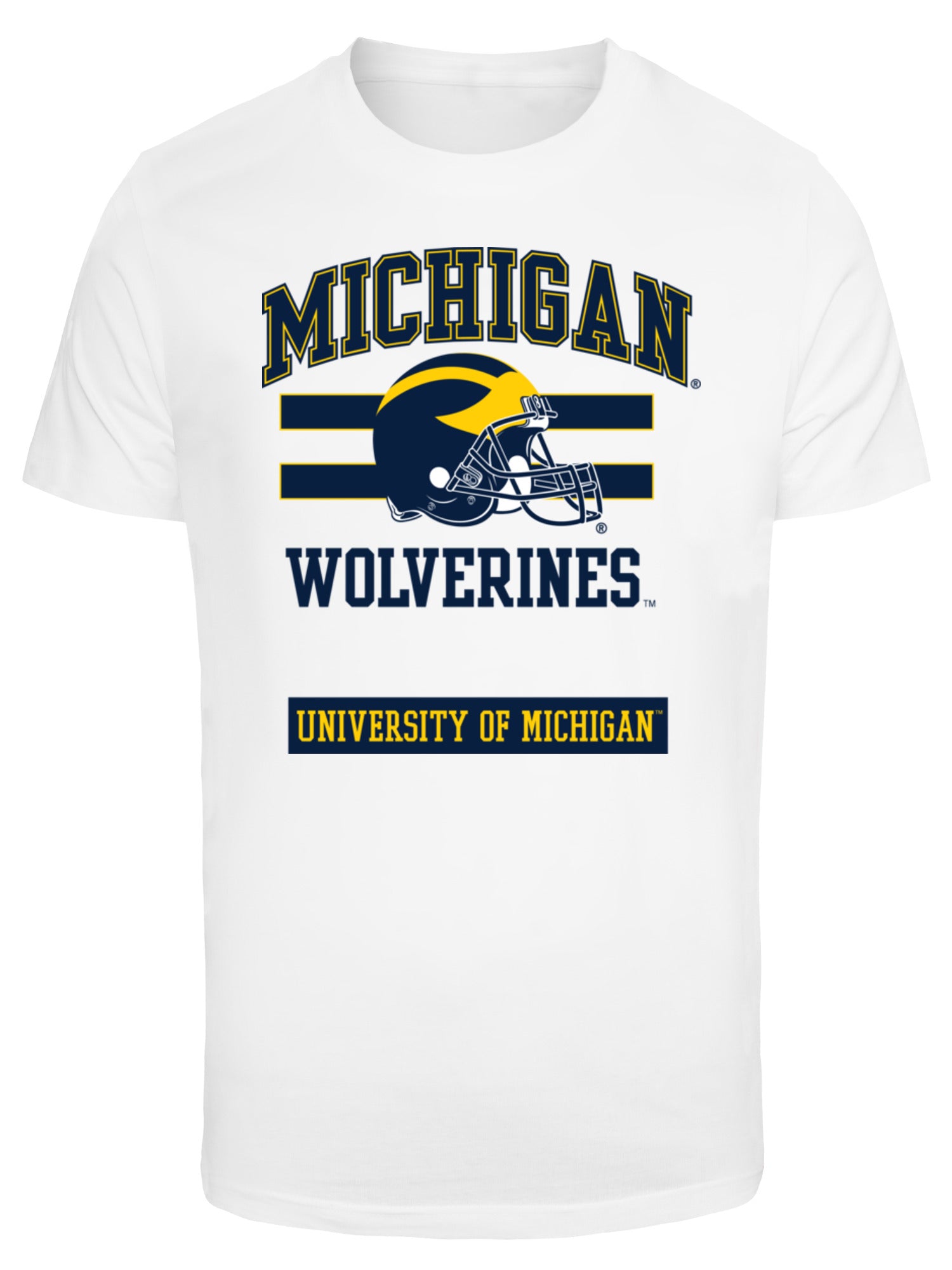 University of Michigan with Helmet Graphic Print T-Shirt - White | Wholesale College & University T-Shirts