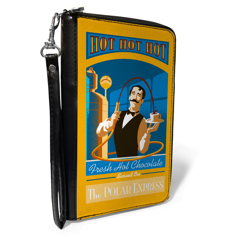 Wholesale Women's PU Zip Around Wallet Rectangle - THE POLAR EXPRESS Hot Chocolate Waiter Yellows Blues Red | Wholesale Clutch Zip Around Wallets
